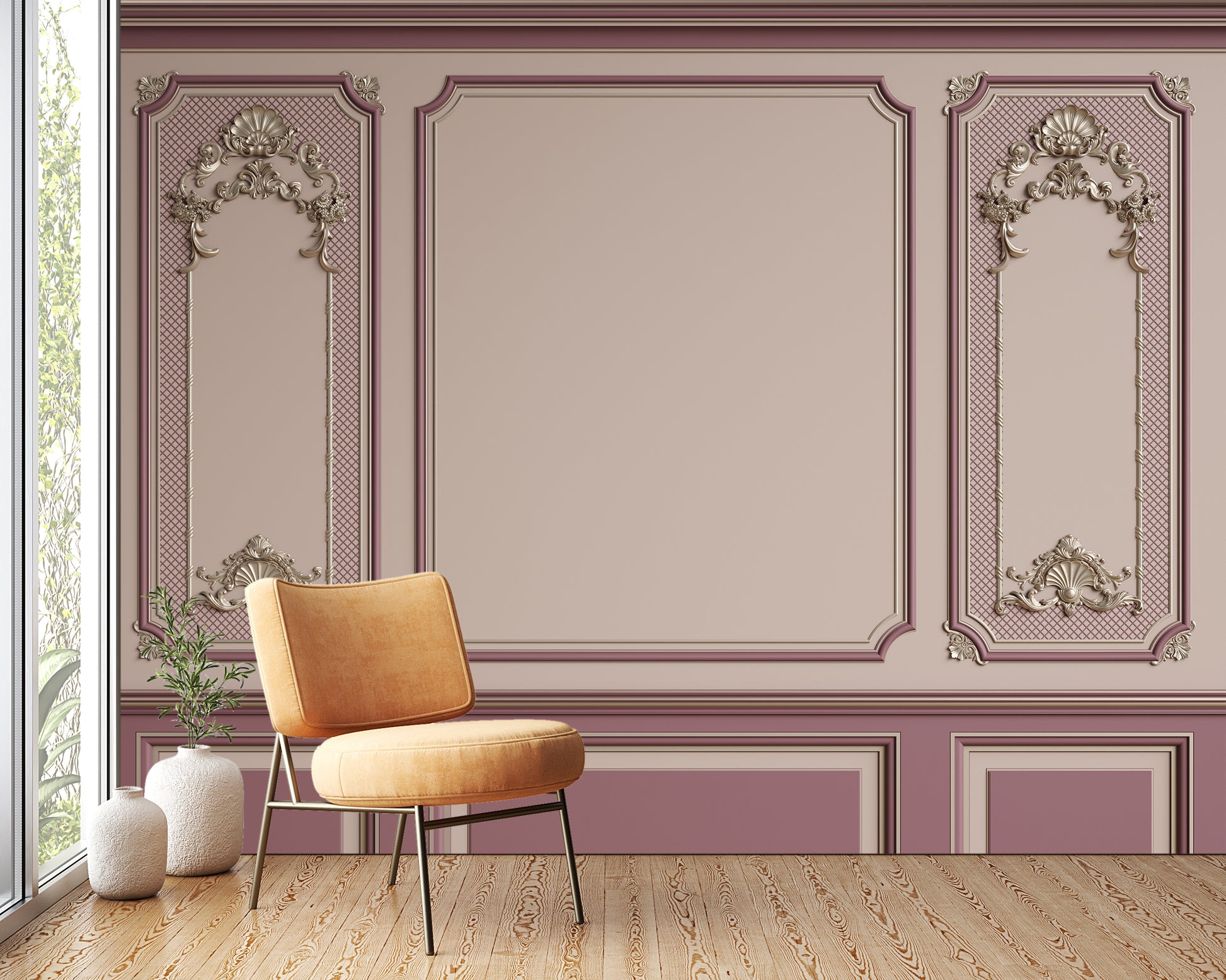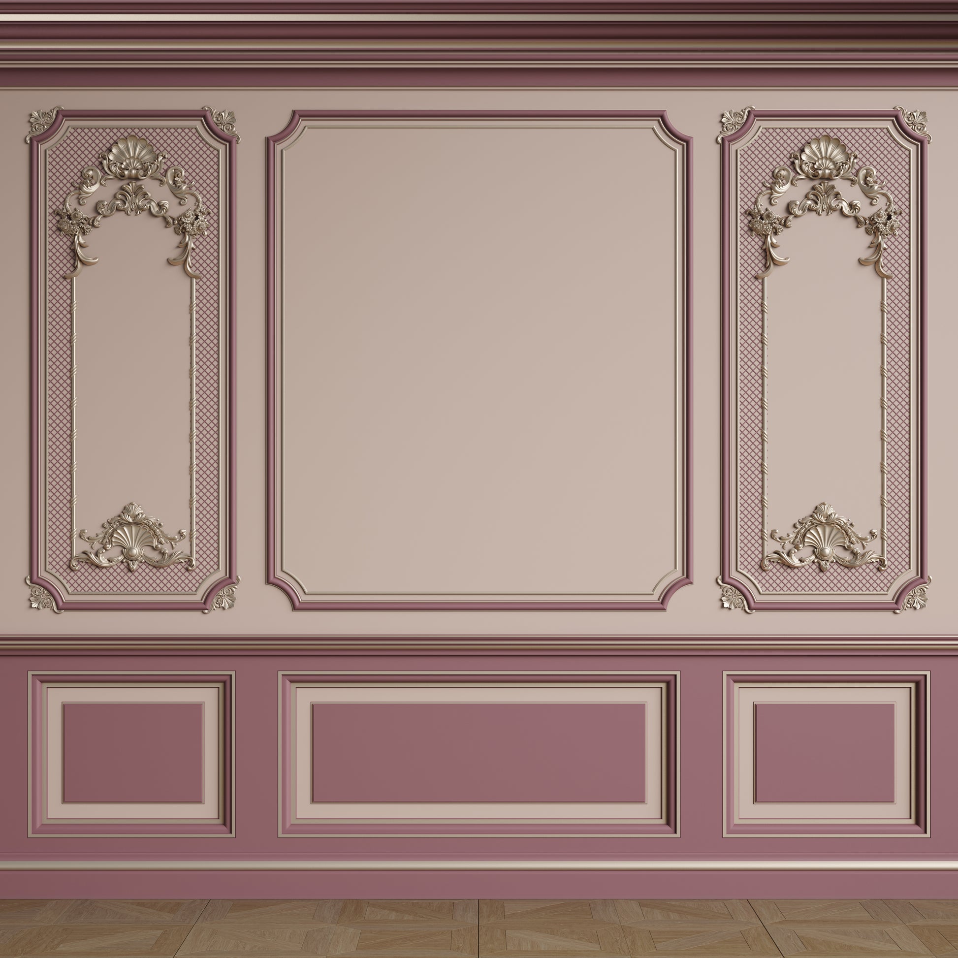 classic interior wall with mouldings floor parquet herringbone digital illustration 3d-rendering (3)