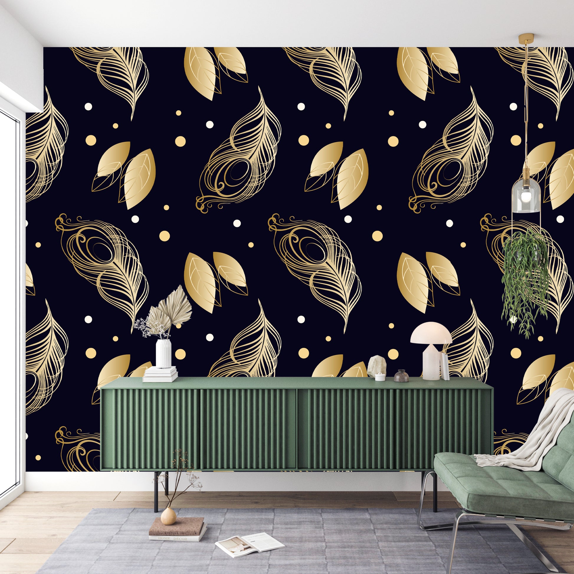 seamless-pattern-golden-peacock-feathers-leaves-black-wallpaper-wallpaper-textile